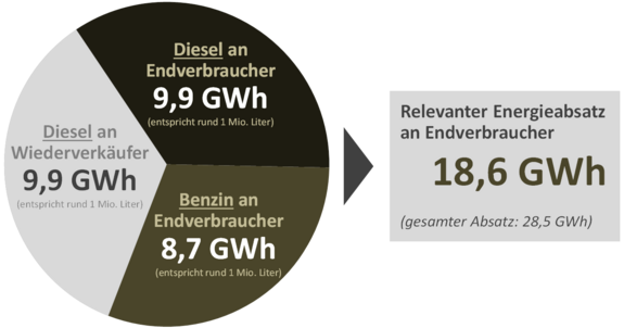 Der relevante Energieabsatz im Fall der Tankstelle beträgt 18,6 GWh.