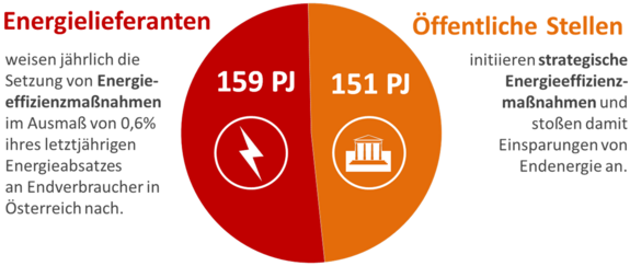 Auch öffentliche Stellen haben im Energieeffizienzgesetz eine Reihe von allgemeinen und besonderen Pflichten auferlegt bekommen. Unter anderem leisten öffentliche Stellen bis 2020 indirekt einen Energieeffizienz-Beitrag in der Höhe von kumuliert 151 PJ mittels strategischer Maßnahmen: